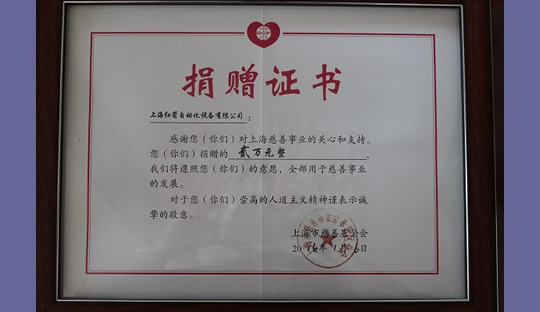 2016年,上海紅箭自動化設(shè)備有限公司為上海市慈善基金會捐款 2016